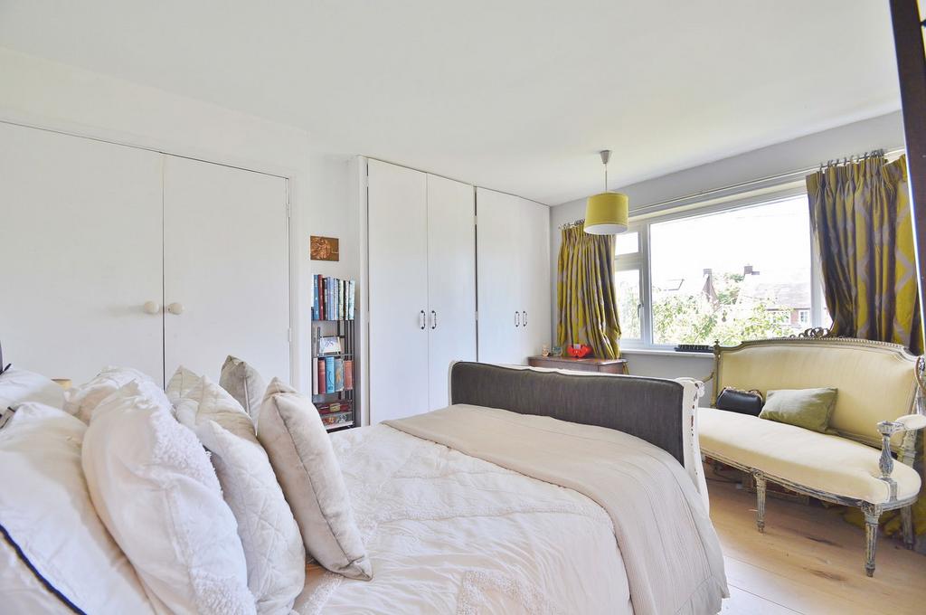 Upstairs, the main bedroom features an enclosed shower cubicle. Two further bedrooms have built-in wardrobes, and the fourth is currently used as a dressing room. A family bathroom with a roll-top bath completes the first floor.