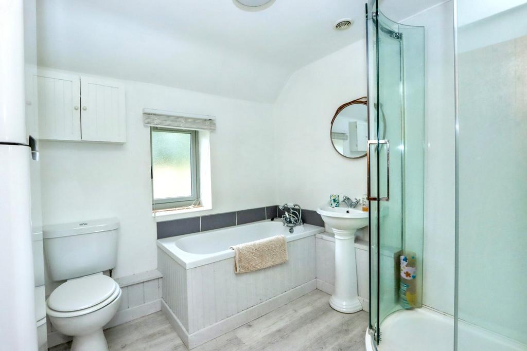 Accessing the first floor from the family living area, you find three good size bedrooms and a four-piece family bathroom. The principal bedroom is a particularly large room benefiting from windows to the front and rear/side aspect, offering views out across to the fields at the rear of the property. Bedroom two is also a substantial double room whilst bedroom three is a good-sized single bedroom. The family bathroom consists of corner shower enclosure, bath, sink and toilet.