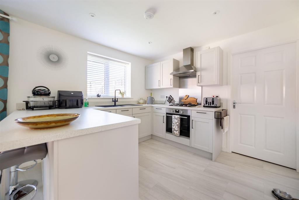 From the kitchen, you have access into a separate utility room offering additional counter space, room for appliances, an external door to the side, and access into a ground floor WC and internal access to the garage.
