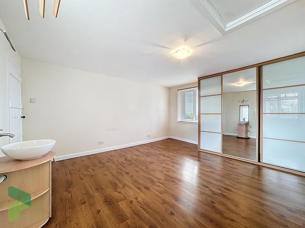 BEDROOM ONE 15' 4" x 13' 9" (4.67m x 4.19m) 3 PVC double glazed windows, fitted mirrored wardrobes, two radiators, vanity sink, laminate flooring