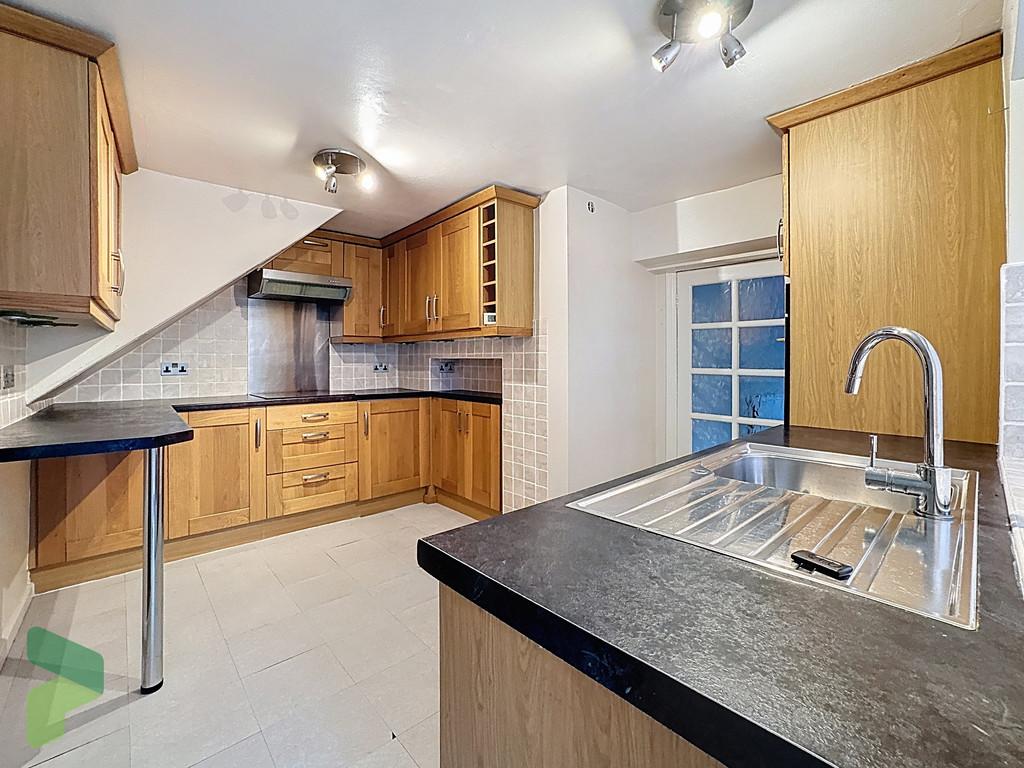 FULLY FITTED KITCHEN 12' 2" x 10' 6" (3.71m x 3.2m) Oak wall and floor units including drawers, built in oven, hob, extractor, dishwasher, washing machine, single drainer sink unit, breakfast bar, PVC double glazed window, radiator