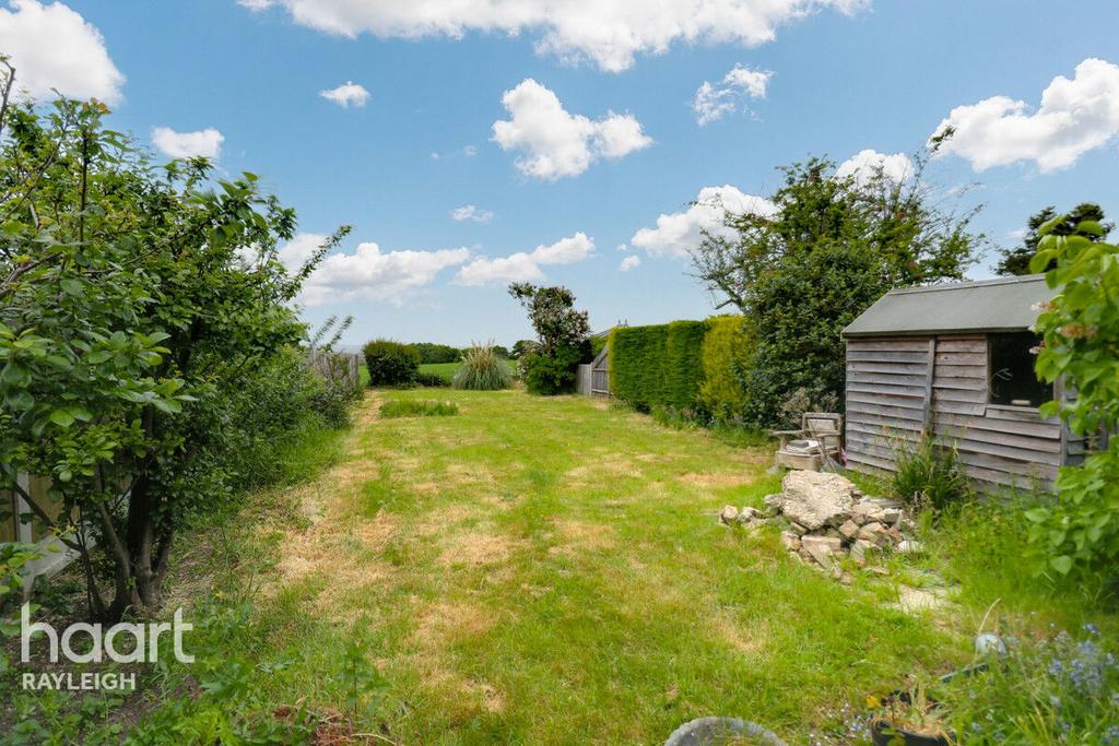Mainly laid to lawn with mature shrub and tree borders, backing on to open fields to rear with stunning views, side gated access to front.