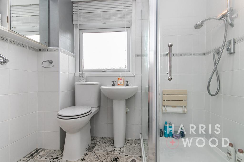 Double glazed window to rear, low level WC, wash hand basin, shower