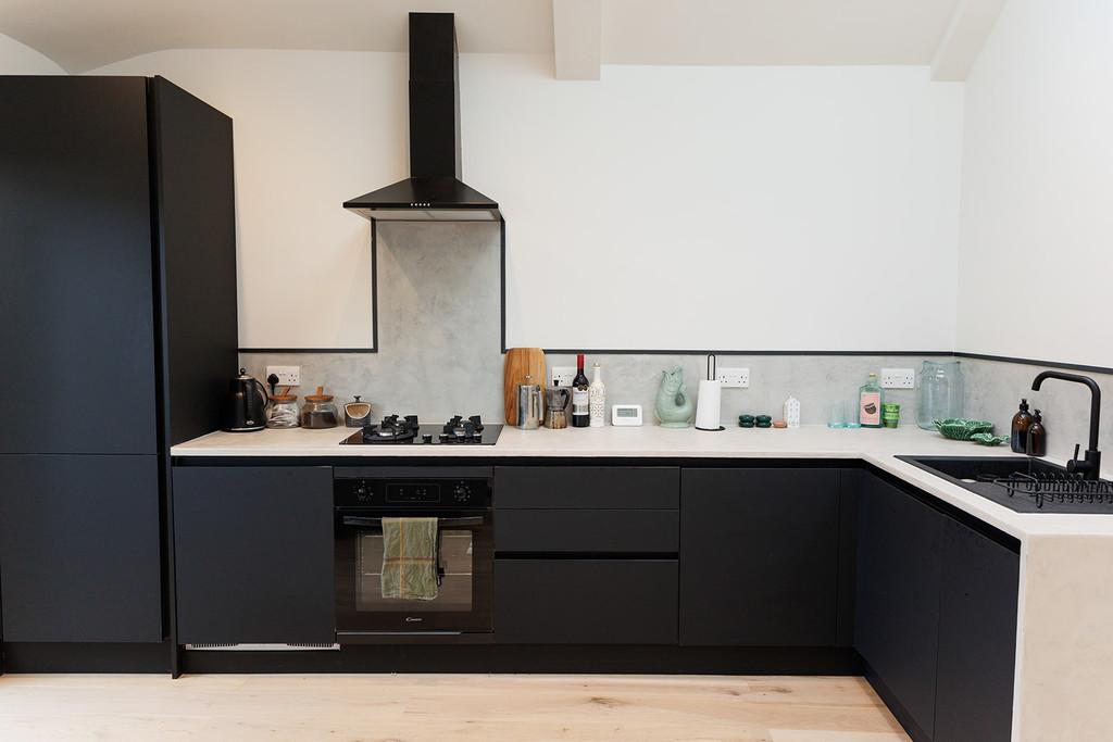Fitted with a contemporary styled kitchen with wall and base units and a complementary worktop. Inset sink with mixer tap over. Integrated electric oven, inset four ring gas hob with feature splashback and extractor hood over. Integrated fridge. Boiler inset to a cupboard, good general storage space.