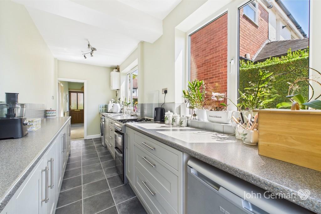 Step inside the reception hall that has a stained feature window and a useful understairs cupboard. An extended and well proportioned lounge has a brick fireplace with tiled inset and hearth housing a coal effect gas fire. Patio style doors open to the lovely rear garden.