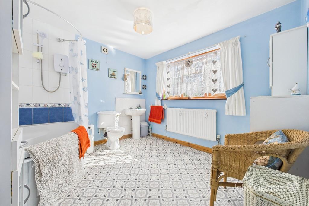 Completing the first floor is the spacious family bathroom presently having a white suite incorporating a corner bath with an electric shower over, tiled splash backs and a front facing window. There is space and potential to redesign the layout to provide both a bath and separate shower cubicle if preferred.