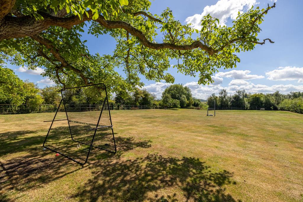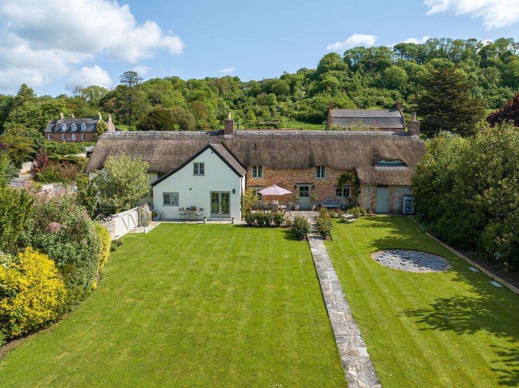 A stunning Grade II listed former farmhouse in gorgeous countryside with 5 acres of grounds, paddock and orchard. Sympathetically restored (thatch reridged 2024) throughout to provide an immaculate home with fabulous character features throughout.