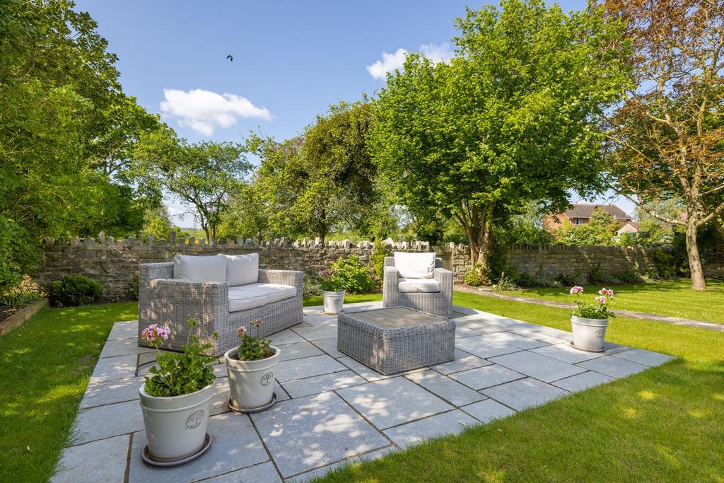 Recently installed at the bottom of the pretty walled garden is a stylish patio area ideal for outside dining or outside kitchen complete with added electric points. Of particular note is the beautiful David Austin rose borders which have been lovingly cared for complete with a flagstone path leading all the way down the large lawned garden to the restored cock and hen wall and little gate into the ‘Orchard’.