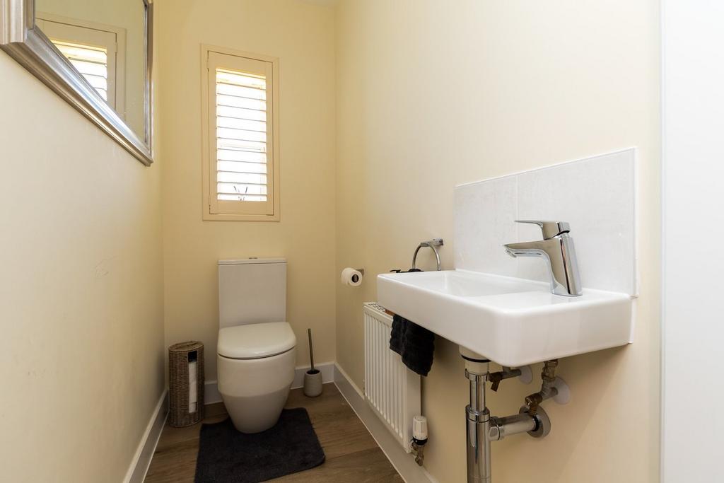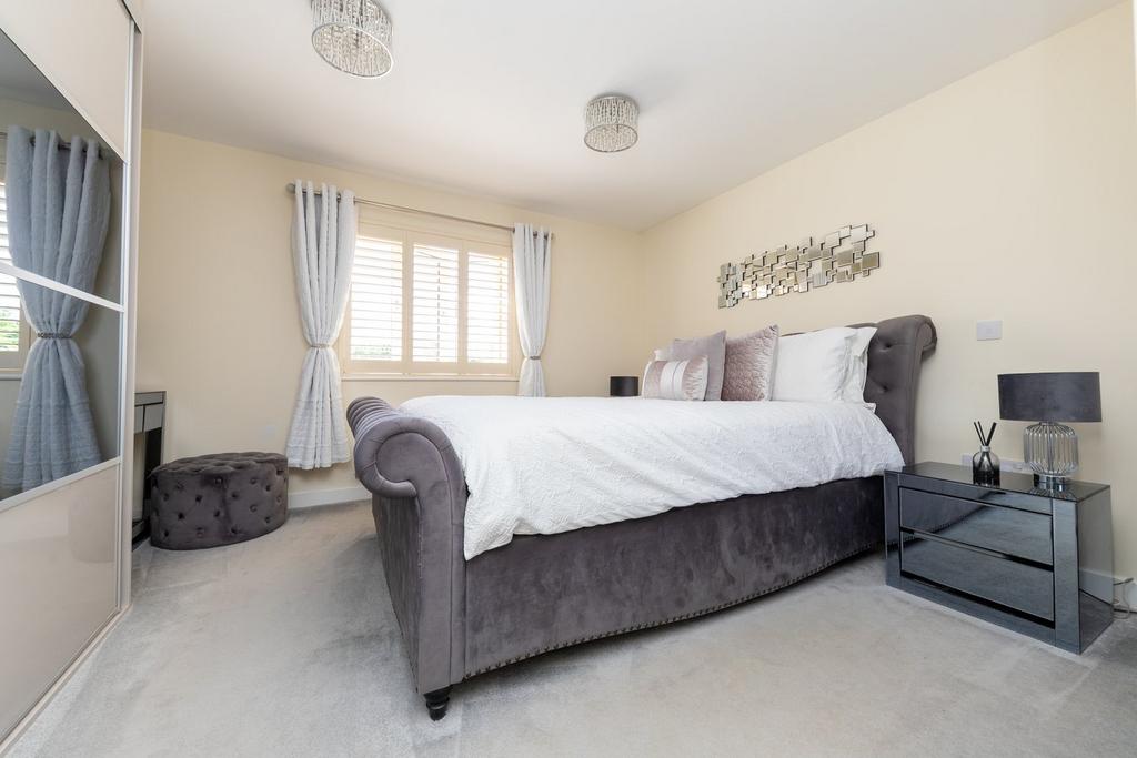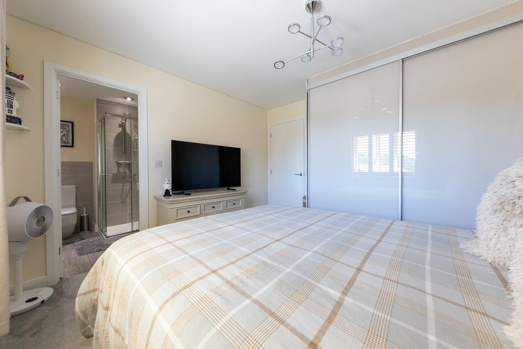 Ascending the elegant winder staircase takes you to the galleried, first-floor landing with fitted carpet established throughout, which continues through to all four double-bedrooms. All bedrooms boast immaculate presentation with generous dimensions, and both the master bedroom and bedroom two overlook the south-facing rear garden and delightful green spaces, and feature large, integrated, sliding-door wardrobes with luxury en-suites, giving the first-floor an impressive total of three bathrooms, including the family bathroom, a pristine four-piece suite comprising panel bathtub, enclosed shower unit, WC, vanity hand-wash basin and tasteful porcelain splashback tiling. The landing also presents access to the loft space and airing cupboard which houses the hot water tank.