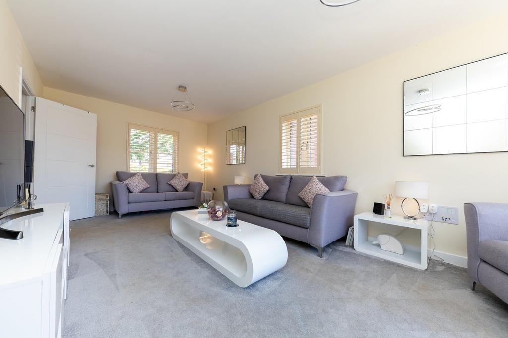 *CHAIN FREE* *GUIDE PRICE: £575,000 - £585,000* Delve in ultimate luxury within this pristine, four double-bedroomed, family home. Uniquely constructed to its 'Sherbourne' design, this property forms as part of an exclusive development by Messrs Mulberry Homes, and is a standout property which flaunts, mesmerising curb-side appeal and stunning, sun-soaked internal accommodations, featuring dual aspect window implementations and French doors, all of which come with bespoke fitted shutters. The ground floor welcomes you to a spacious hallway with doors off to two bright & airy receptions, including the lengthy sitting room with French doors to the garden, dual-aspect dining room/snug with bay window, and there is also a modern cloakroom. The kitchen/diner is a highly versatile area which allows for lounging pursuits, as well as cooking and dining, and too features French doors to the sunlit rear garden. The kitchen further boasts contemporary, shaker style units, finished in matt, 'Dove Grey' and premium granite worktops, as well as an extensive range of integrated appliances, and not to mention, the highly functional utility room with matching design. Ascending the elegant winder staircase takes you to the galleried first-floor landing where there is access to the four, highly substantial double-bedrooms. The master bedroom and bedroom two overlook the south-facing rear garden, and feature large integrated sliding-door wardrobes and luxury en-suites, and the family bathroom is a simply marvellous four-piece suite, comprising both a panel bathtub with shower over and a fully enclosed shower unit, and is finished perfectly with porcelain wall tiles. There is just as much to be desired outside, bask in the sun within the south-facing rear garden, or set up tables and chairs on the patio sections for al-fresco dining, and create joyous moments with family and friends. The property even comes with its own separate double-garage with plenty of eaves storage, and large driveway to park an ample number of vehicles off-road. This unique home is nestled in a corner plot position, and offers calming views over the wonderful central green.
