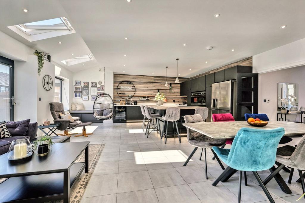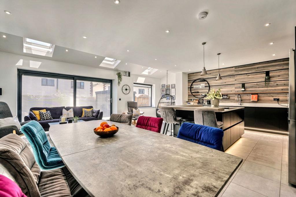 - Incredible open-plan kitchen, dining and living space with skylights and bifold doors