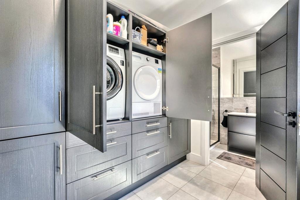 You’ll find a fully fitted utility room discreetly hidden away, plus a proper shower room.