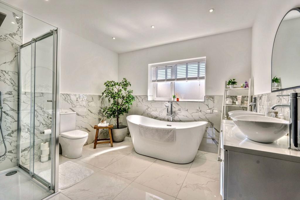 The four piece family bathroom is equally impressive, with a modern, boutique finish and a gorgeous freestanding bath.