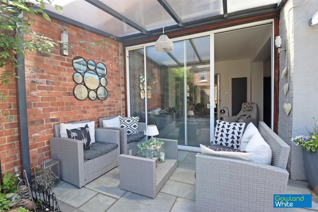 Outside, the rear garden offers a mix of lawn and patio, plus a covered seating area ideal for relaxing or entertaining. A versatile summer house with power and a log burner could serve as a home office, playroom or a garden retreat.