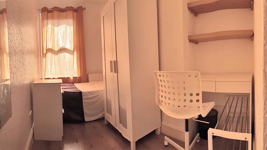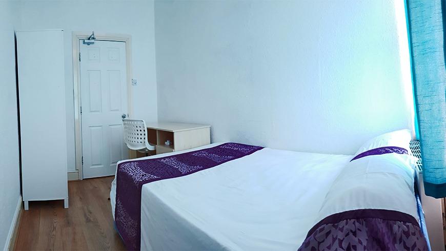Fully furnished rooms, including wardrobe, bedside table, chest of drawers, desk, chair, full-length mirror, and wastepaper basket