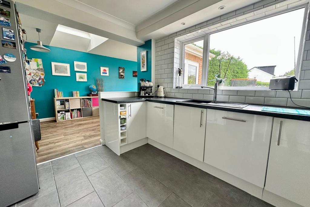 Accommodation comprises four generous bedrooms, a large lounge/dining room, study and a re-fitted kitchen/breakfast room which opens directly into the family room with high vaulted ceilings and doors to the rear garden. Further benefits include a family bathroom, en-suite shower room to the principle bedroom, downstairs cloakroom and utility room.