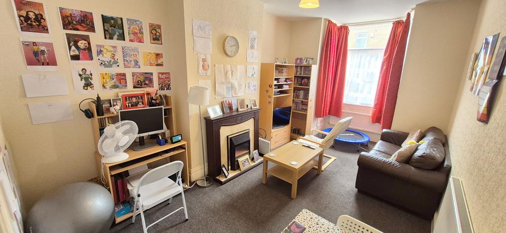 It consists of hallway to beech fitted kitchen with space for tall fridge/freezer, plumbed for washing machine and door onto the fire escape with access access to rear yard with useful storage shed, front facing dorma windowed lounge, good sized double bedroom, second bedroom/ study room and bathroom with bath and shower. Gas Central Heating and Double Glazing