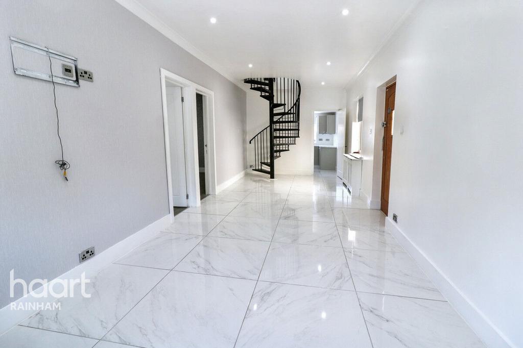 Double glazed box bay window to the front, covered radiators, spiral staircase to loft room, double glazed window to side, tiled flooring, cupboard housing meters, doors leading to rooms.
