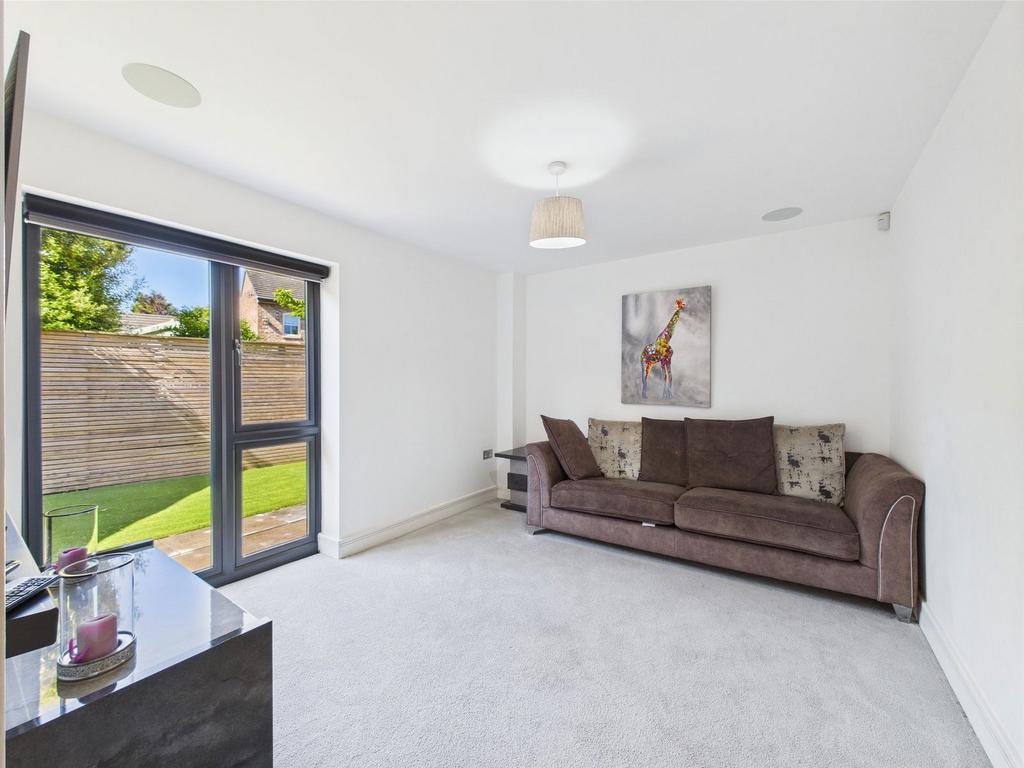 Flowing seamlessly from the kitchen/dining area is a spacious living room, perfect for relaxing or hosting guests. A separate utility room, accessed via the kitchen, adds practical convenience, while the ground floor also offers a stylish WC, a cosy snug, and a generously sized fifth bedroom complete with fitted wardrobes and drawers, complemented by a sleek en-suite shower room – ideal for guests or multi-generational living.