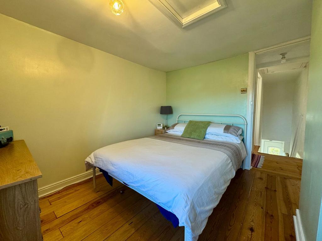 The first floor of the property features two double bedrooms with wooden floorboards and a family bathroom.