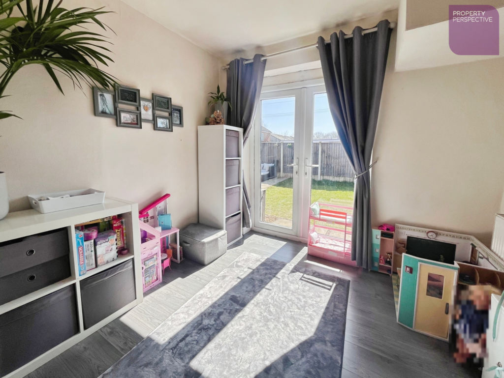 Family Room - 2.41 x 2.82m (710" x 93") - High quality wood effect laminate flooring with patio doors leading to the rear garden and curtains