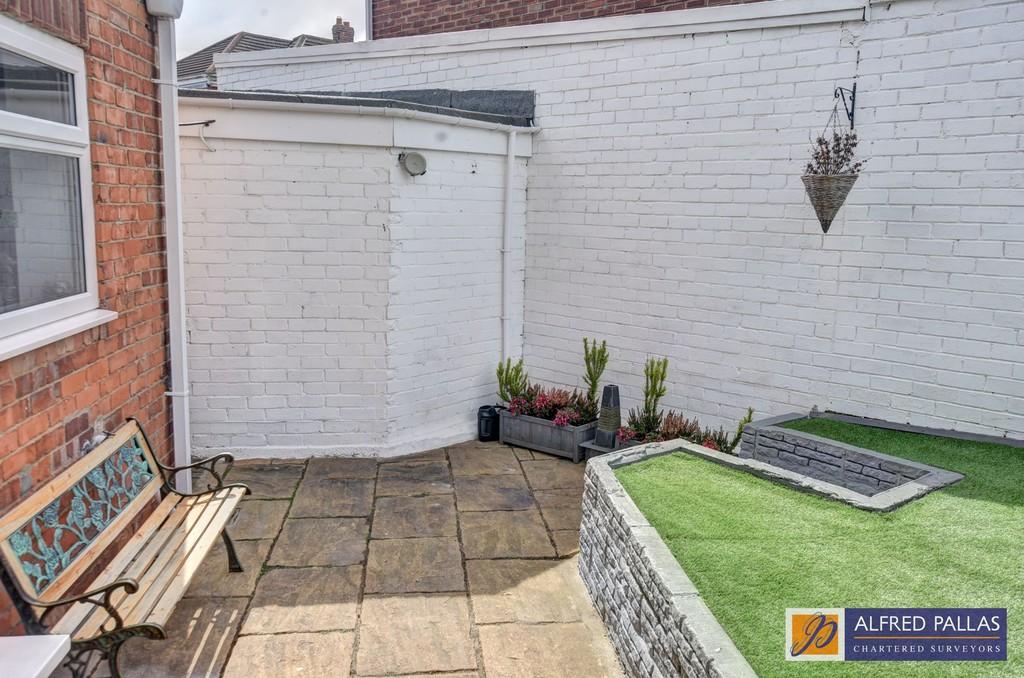 Rear garden with small block paved area and artificial grass; lovely west facing sunny aspect