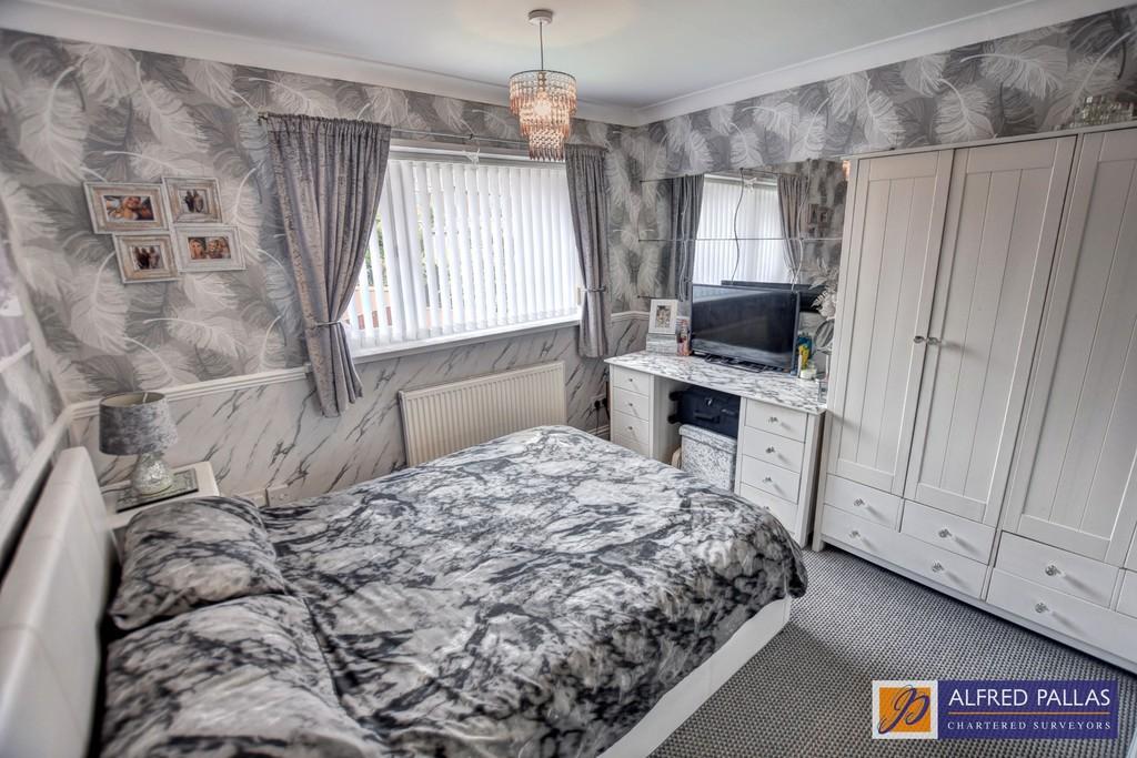 BEDROOM 1 12' 0" x 8' 2" (3.66m plus bay x 2.51m) Mirror fronted wardrobes with sliding doors; dado rail; radiator