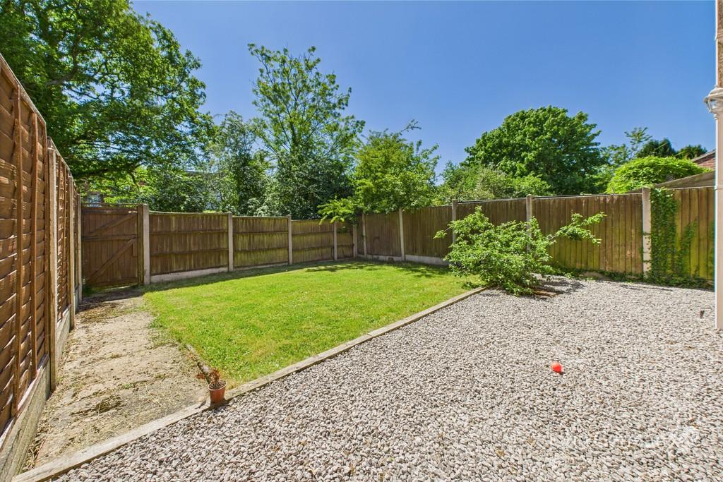 Externally, the property benefits from a single garage with power, lighting, up-and-over door, and houses the electric circuit board along with gas and electricity meters. The rear garden is spacious and enclosed, featuring a gravel seating area, a well-maintained lawn, an outside tap, and timber fencing.