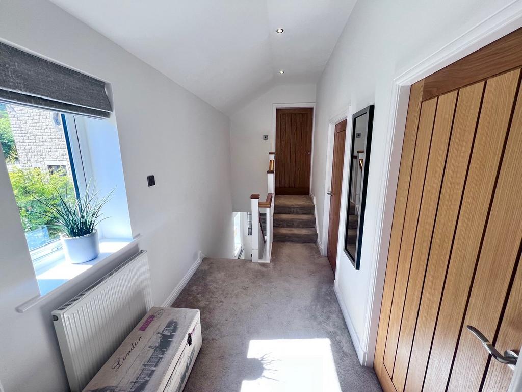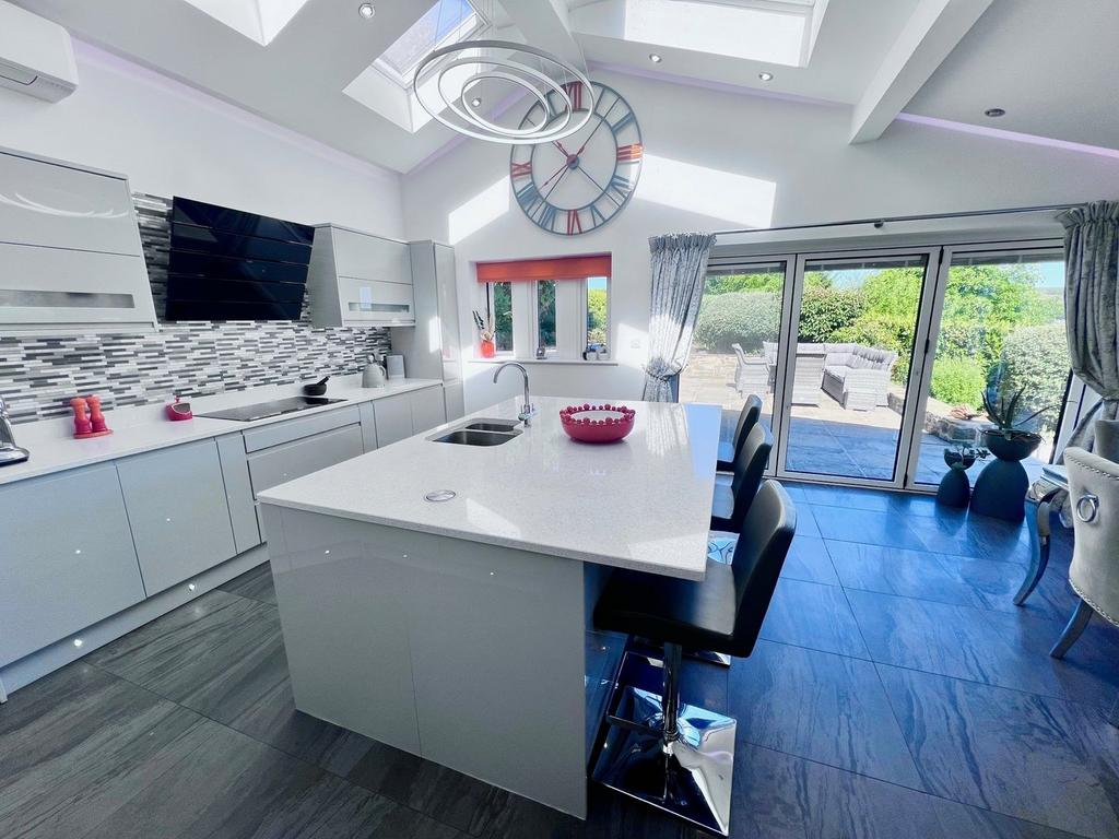 This stunning property features a spectacular open-plan kitchen, dining and lounge area flooded with natural light thanks to large picture windows and bi-folding doors. These open onto a generous patio, offering an ideal space for entertaining or simply enjoying the sweeping moorland views.