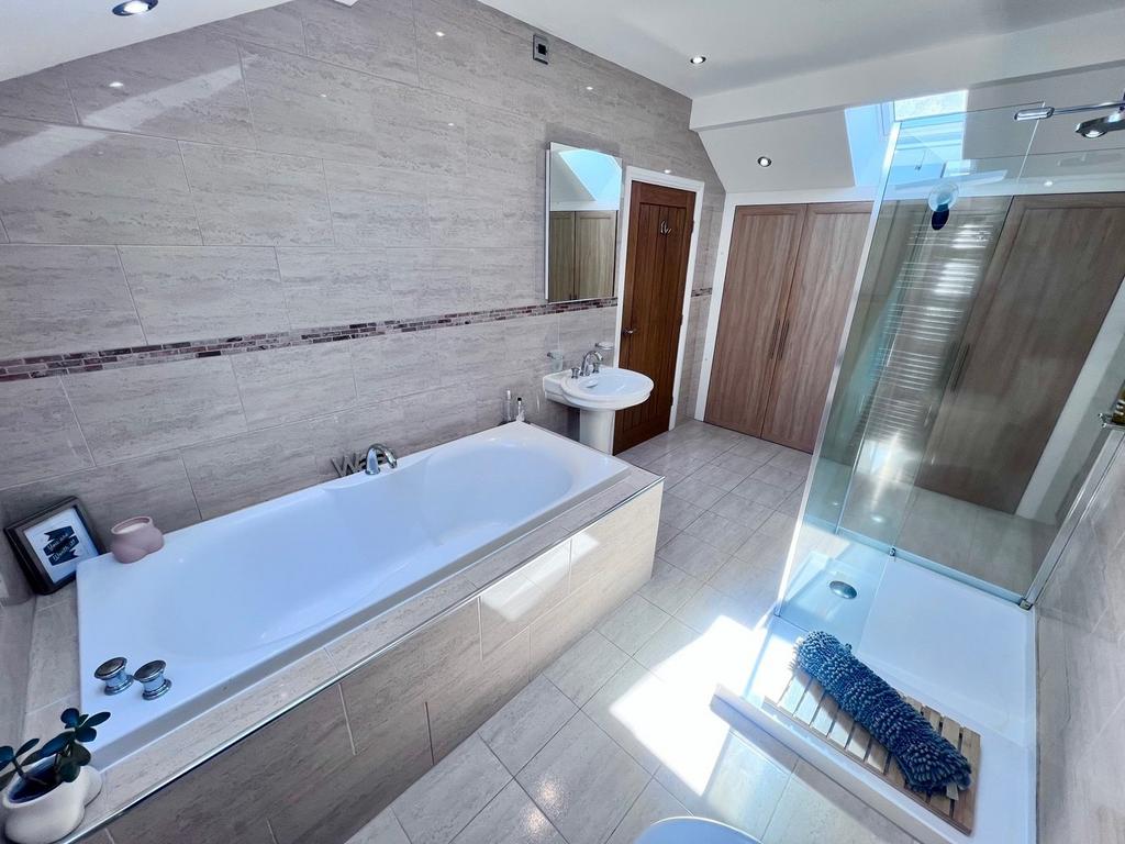 The gardens have been professionally landscaped to create a series of private outdoor areas. The rear garden features a raised slated deck, dry-stone walls, and a tranquil cascading pond all beautifully lit for evening enjoyment.