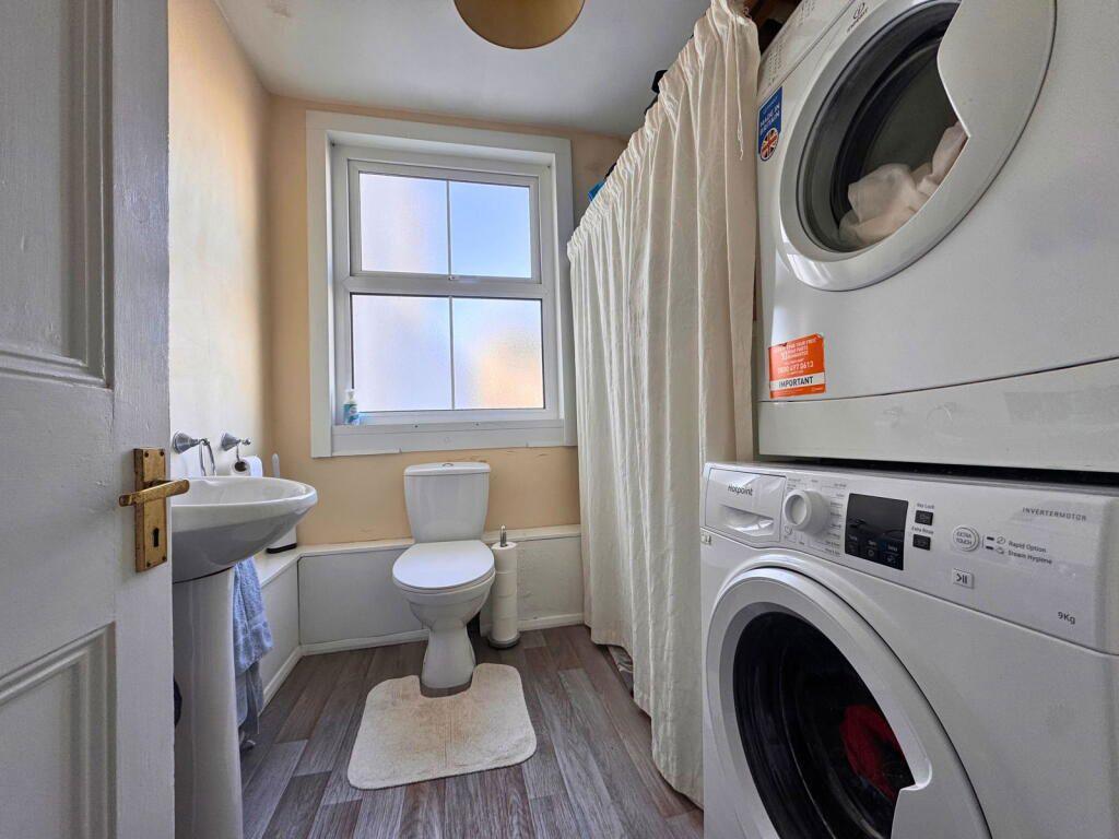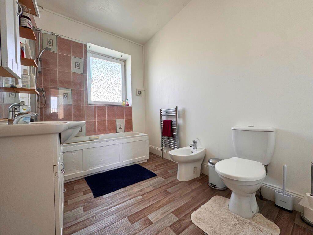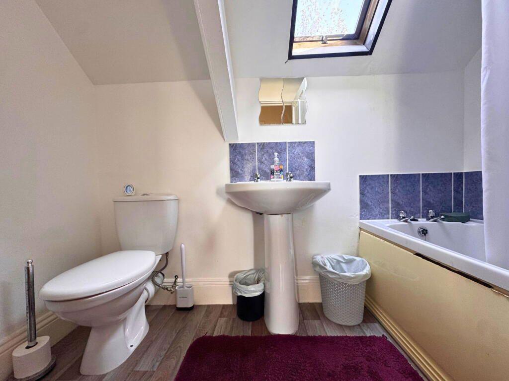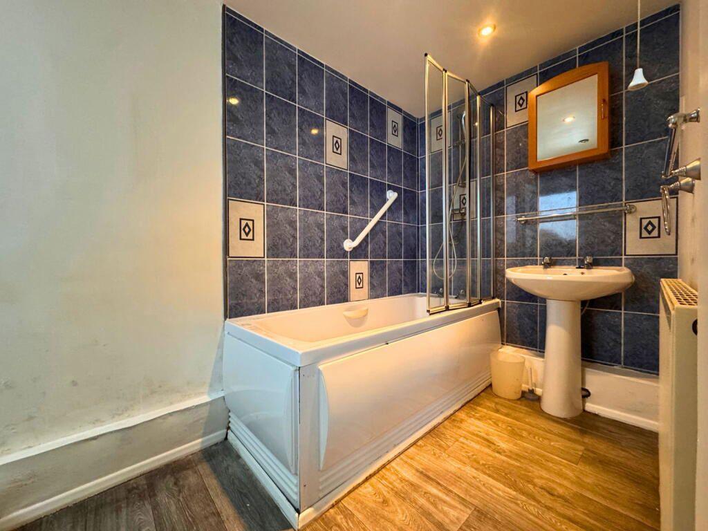 Bathroom: To the rear of the property is the bathroom with bath and overhead shower facility, WC and wash hand basin.