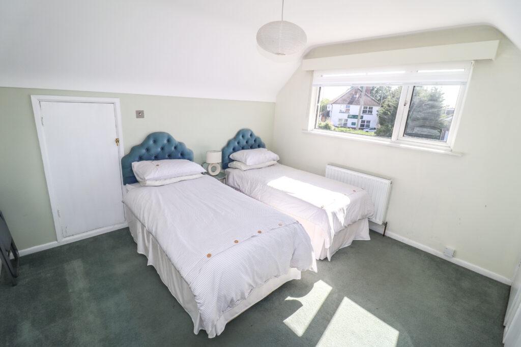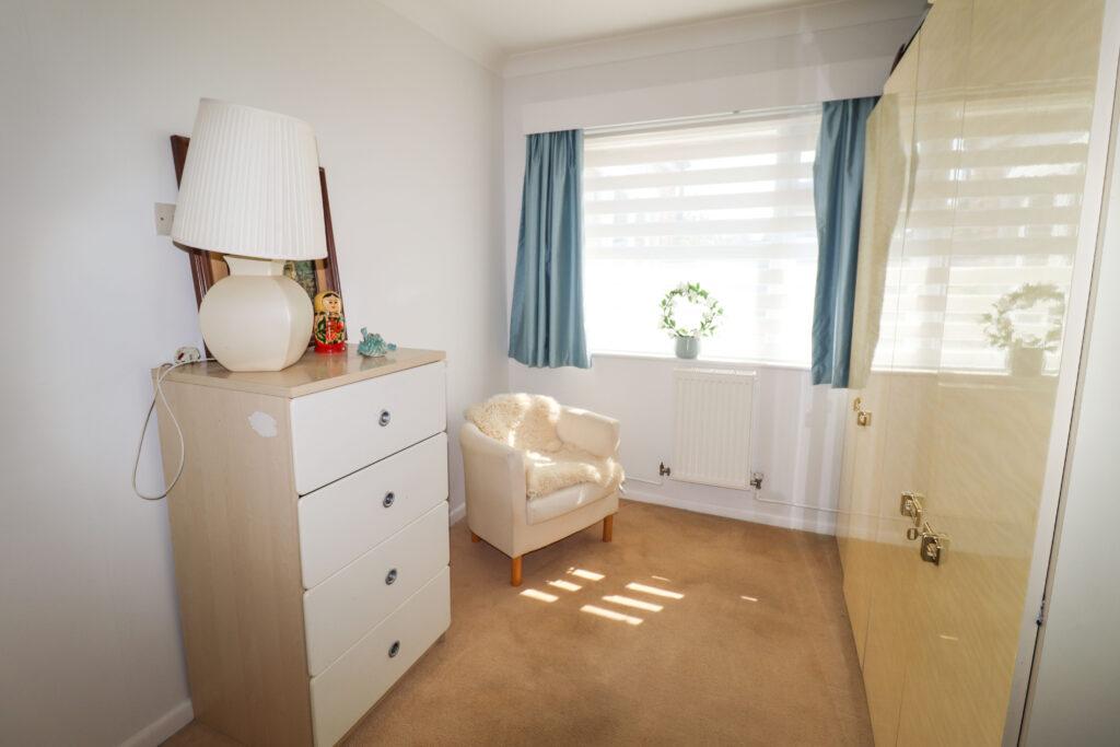 13'5" x 11'10" (4.08m x 3.60m) South facing UPVC double glazed window to the side. Television point. Radiator. Two built in cupboards. Door to the eaves storage space. UPVC double glazed window to the front.