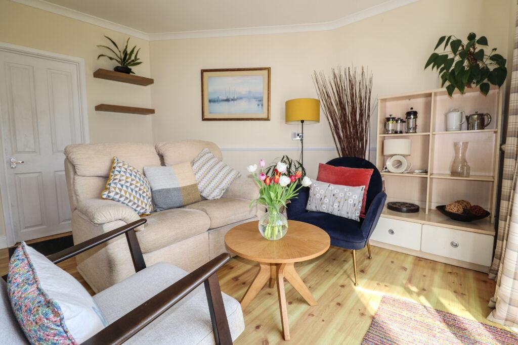 12'7" x 12' (3.83m x 3.65m) UPVC double glazed French doors, (with two UPVC double glazed side windows), to the rear garden. Decorative dado rail. Radiator. Laminated wood flooring. Television point. Dimmer switch. Attractive wall light. Personal door to the store and garage.