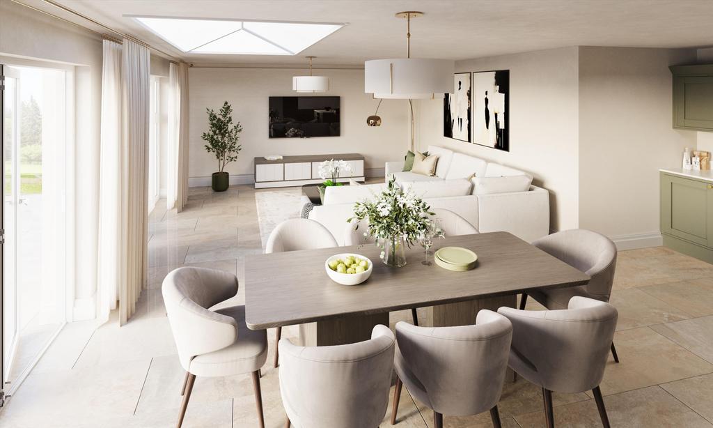 At the front of the house, you’ll find a generously sized living room and a separate study, both benefiting from large windows and underfloor heating that extends throughout the entire ground floor.