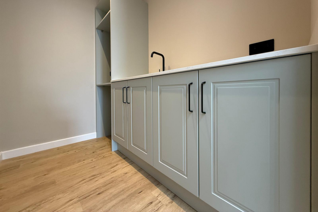 A separate utility room offers additional storage and practicality with fitted units, a sink, matching quartz worktops, and designated space for a washing machine and tumble dryer.