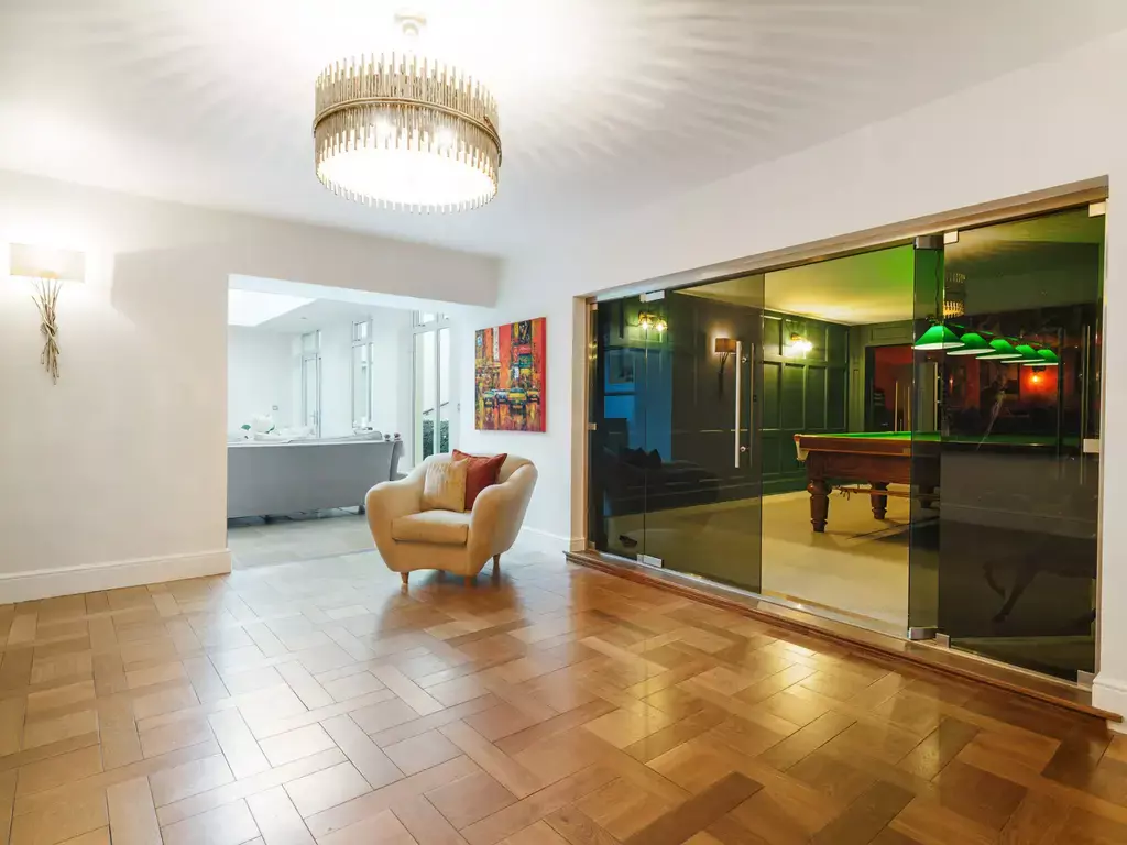 The accommodation is extensive and thoughtfully arranged over two floors, finished with high-quality fixtures and fittings throughout. A grand and welcoming reception hall sets the tone, leading to a series of beautifully presented rooms. The ground floor includes a formal dining room, cinema room, conservatory, snooker room with bar, and a gym with adjoining shower facilities. In addition, there is a large dining kitchen ideal for family gatherings and there is a walk-in pantry, wine cellar, and utility room.
