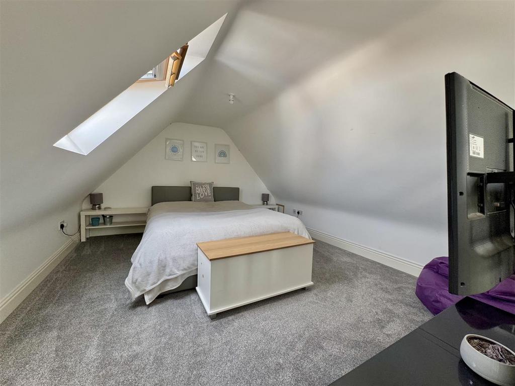 Bedroom: - 27'5 x 9'2 - Double glazed window to rear overlooking farmland with distant views towards the River Blackwater, Velux windows either side of room, balustrade staircase down to: