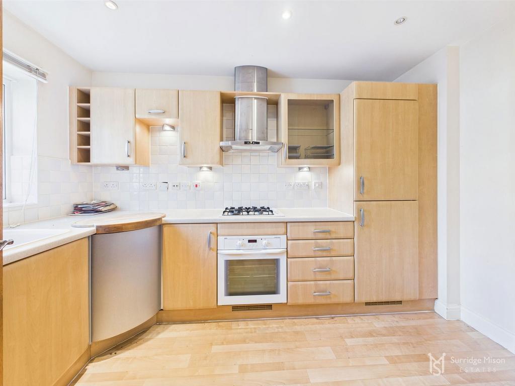 Double glazed window to front. Vinyl flooring and part tiled walls. Inset spotlights. Radiator. Fully fitted with a range of wall and base units housing integral fridge/freezer, wall mounted boiler and space for washing machine. Built in electric oven. Work surfaces with inset ceramic sink and drainer unit and 4 burner gas hob with fitted stainless steel cooker hood.