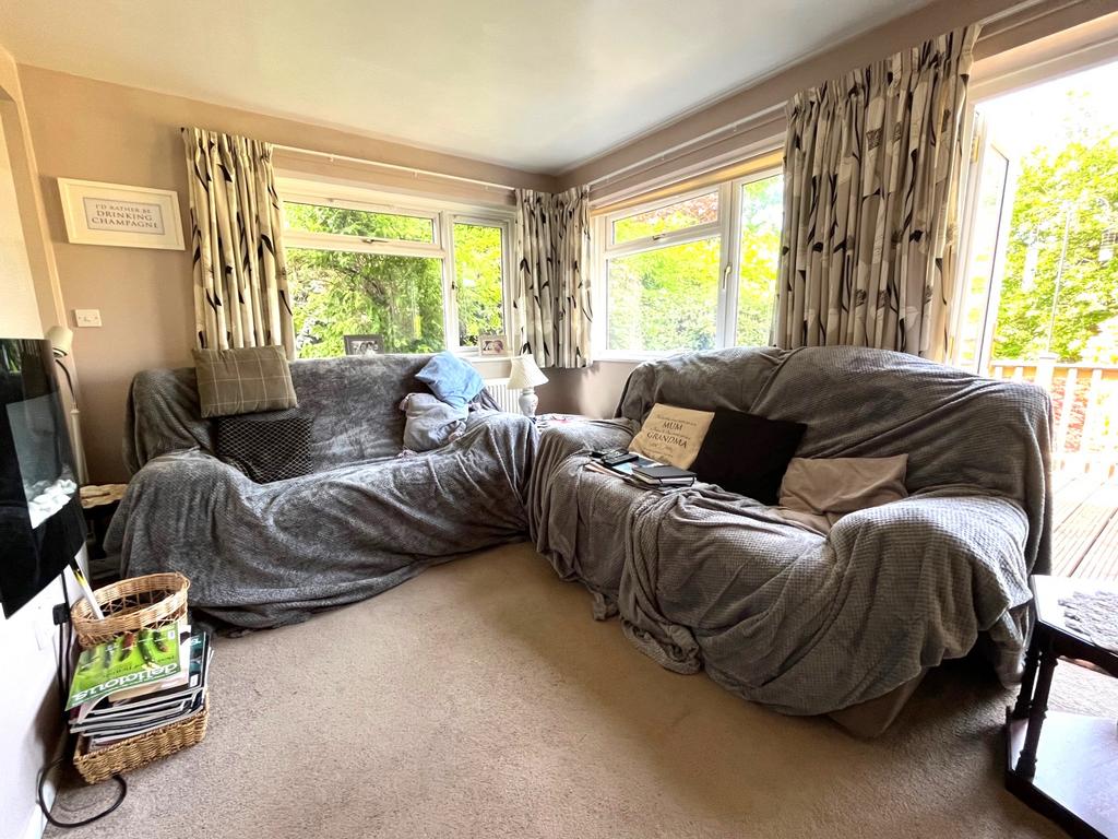 SITTING ROOM (S & W): 15’ (4.57m) x 9’4” (2.85m). Radiator, TV aerial point, double glazed side door, double glazed doors to deck and rear garden.