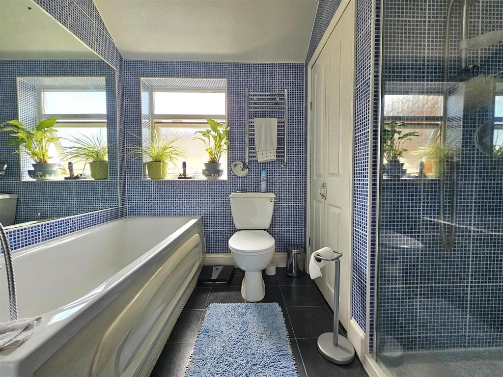 Bathroom - Modern bathroom suite comprising W.C, wash hand basin, bath and shower enclosure with tiled surround.