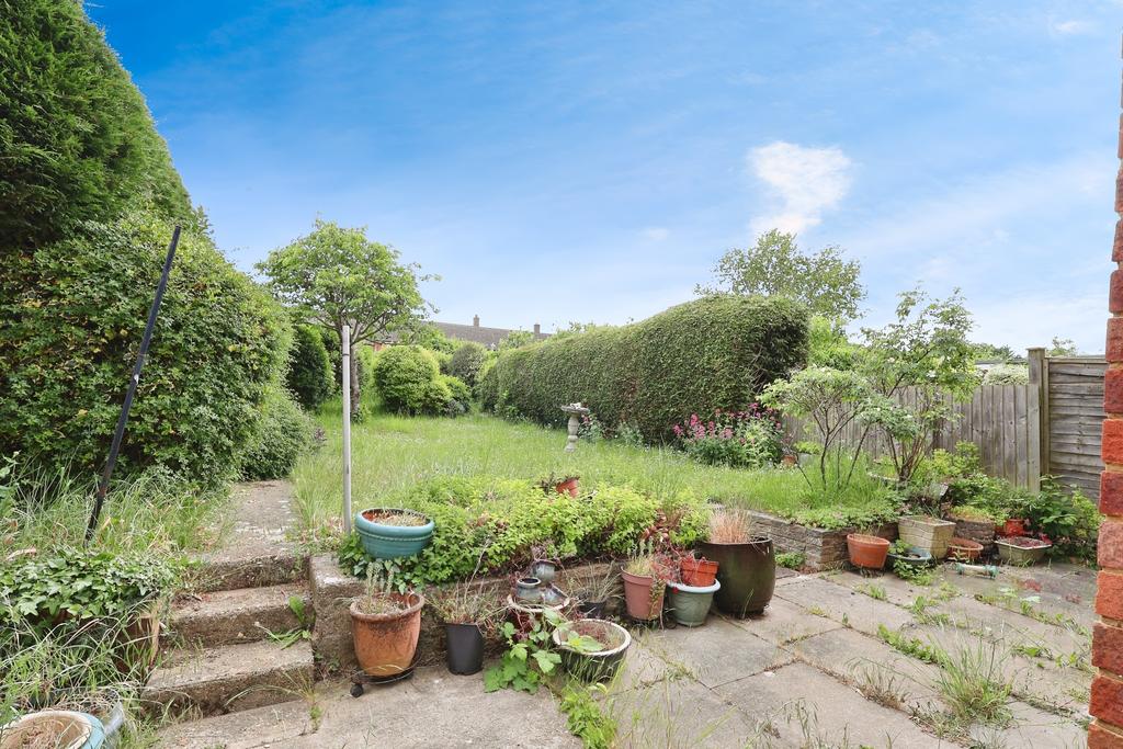 Enclosed by fencing, mature hedging and trees. Patio area leading to slightly raised lawn with varied planting. Paved area to side with timber storage shed to remain. Courtesy door to garage. Gated access to front.