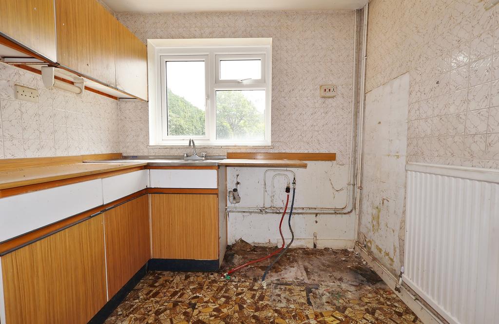 uPVC double glazed window to rear aspect and door to side access. Under stair storage cupboard. Fitted with a range of base and wall mounted cabinets. Stainless steel single bowl sink and drainer with chrome mixer tap.. Space for 600mm free-standing cooker. Space for fridge freezer. Space and plumbing for washing machine. Radiator.