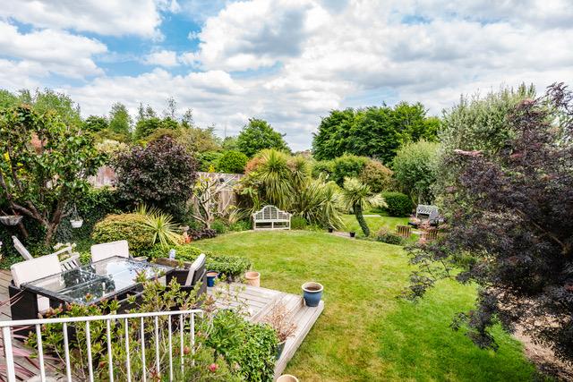 REAR GARDEN: superbly landscaped being laid to lawn with raised timber decked area, excellent range of palm trees, fruit trees, plants and shrubs, gate offering direct access onto the copse, water tap, side access on both sides of the house.