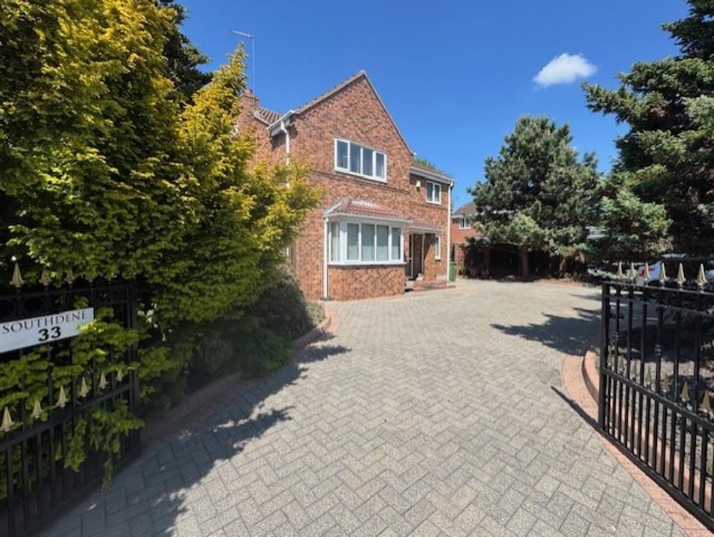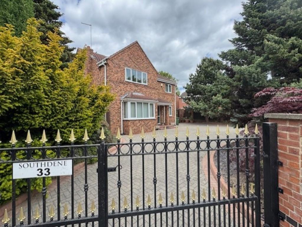 FRONT Double wrought iron gates lead onto a large block paved frontage which can provide parking for approx 6/8 vehicles. Mature trees shelter the property from the road. Further double gates lead down a flagged driveway to the double garage.