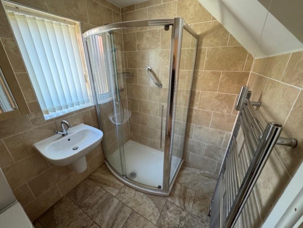SHOWER ROOM 7' 04" x 5' 09" (2.24m x 1.75m) Being fully tiled and having a low flush wc, wash basin and a large walks-in shower cubicle with a thermostatic shower. Chrome towel rail/radiator. Extractor fan.