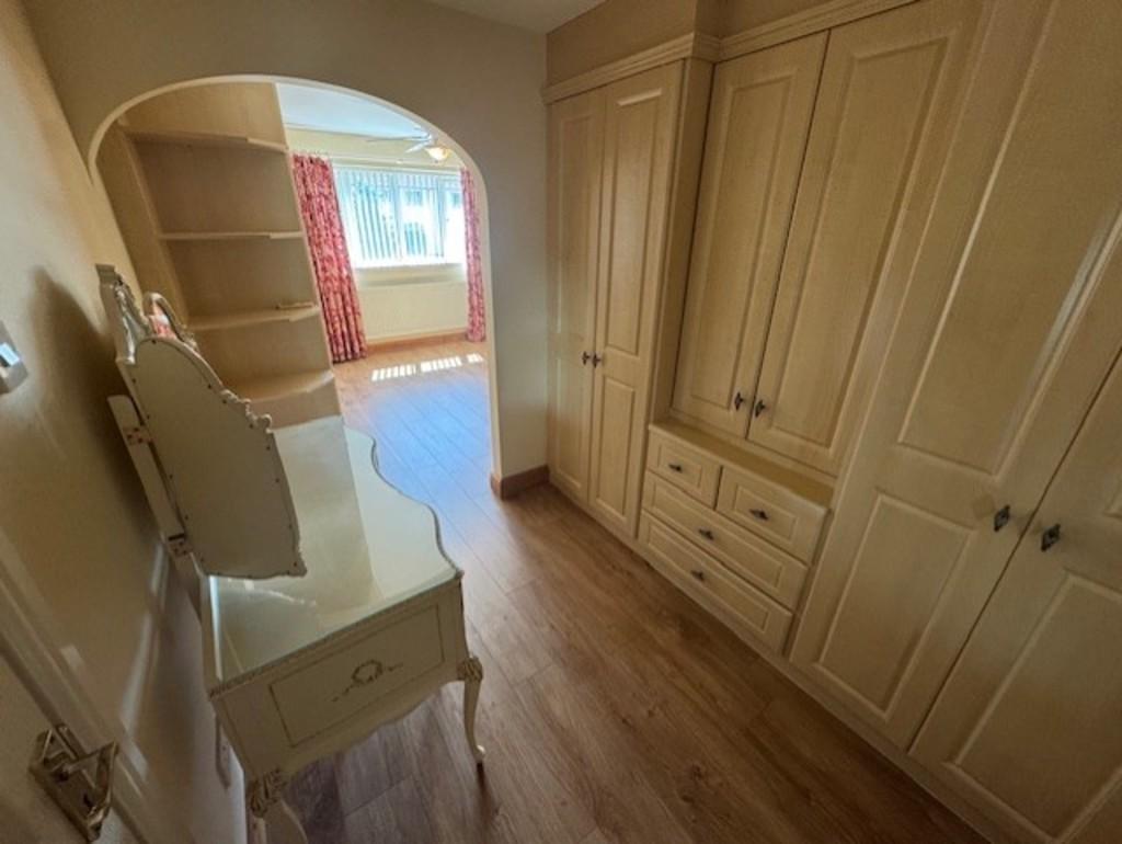 Having a good range of light oak built in wardrobes and drawers with oak flooring following through the archway into the bedroom. Again having light oak built in wardrobes with corner shelving unit. Air conditioning unit. Window out to the front of the property with cream vertical blinds. Radiator with thermostatic valve.