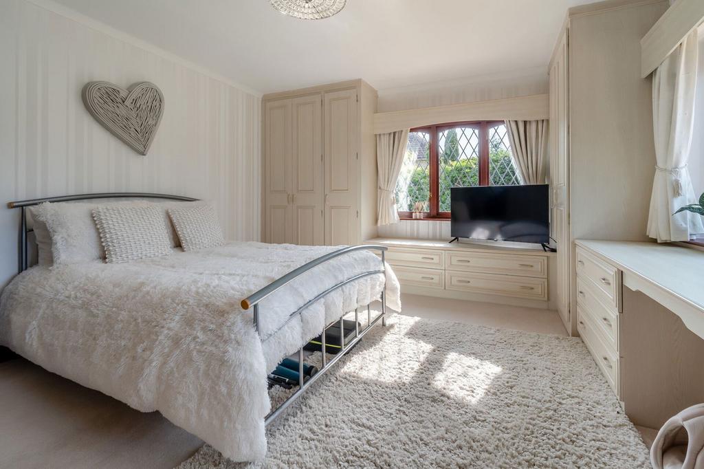 The ground floor double bedroom enjoys a double aspect position, has windows to two aspects, the rear overlooking the garden whilst benefiting from fitted wardrobes and drawer units to the expense of two walls.