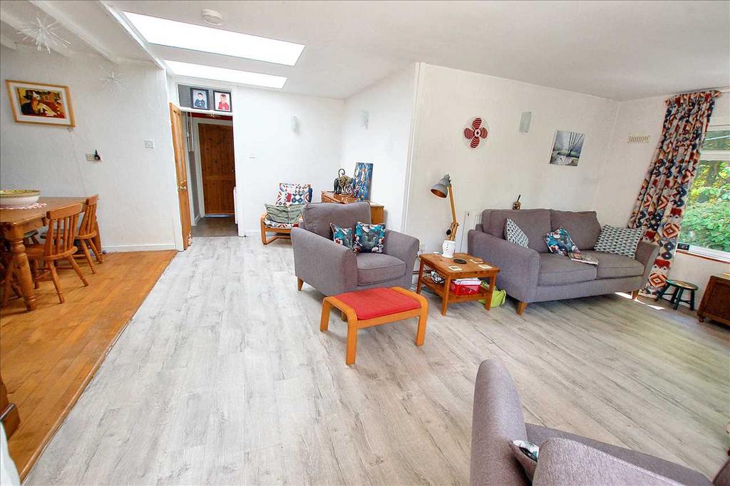 5.77m x 5.40m (18'11" x 17'9") plus 5.03m x 3.66m (16'6" x 12'0") an impressive well lit double aspect room with two windows and two sky lights, lp gas log-effect fire, raised timber floor in Dining Area, access to Inner Hall and ....