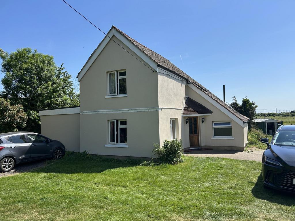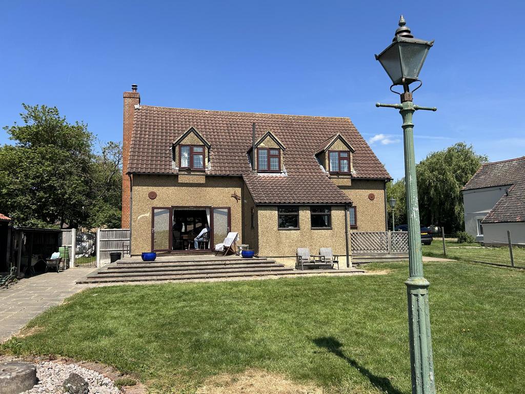 New House is a detached 4-bedroom chalet dwelling constructed of brick with render under a tile roof, benefitting from a garden bound by wooden fencing, as well as a large detached garage.
