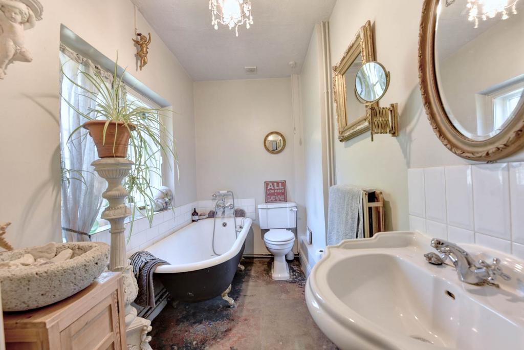 A door off the kitchen leads to the bathroom with pedestal basin, w.c and freestanding 'roll top' bath.